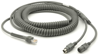 Câble Wedge 6m spiralé PS/2 mini din pour lecteur code barre Zébra Motorola LS2208