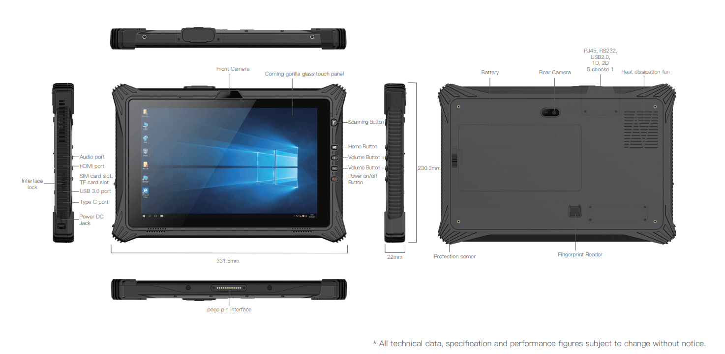 RT110 Intel Jasper Lake N5105, 8G RAM 128 GbSSD, BT, Wifi, 4GLTE, GPS, NFC