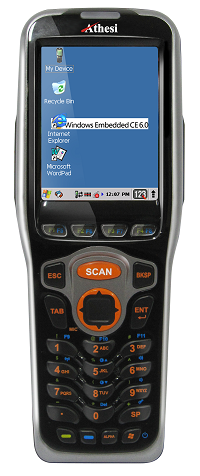 Modèle de base: Windows CE 6.0, 128 Mo Ram, 128 Mo Flash, batterie 2200 mA 3,7V Li-ION, lecteur laser 1D livré avec sa batterie 2200mA et son alimentation